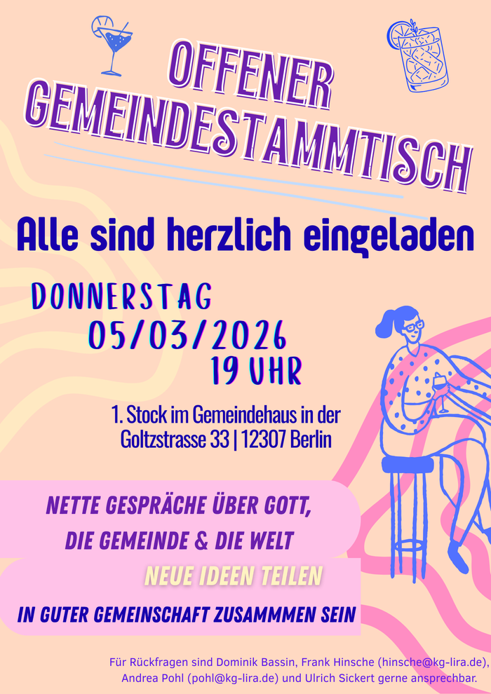 Wir laden alle Gemeindeglieder herzlich zu unserem offenen Gemeindestammtisch ein.